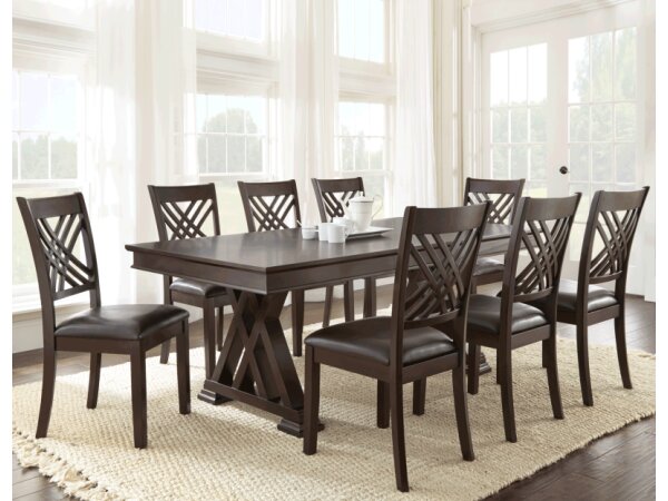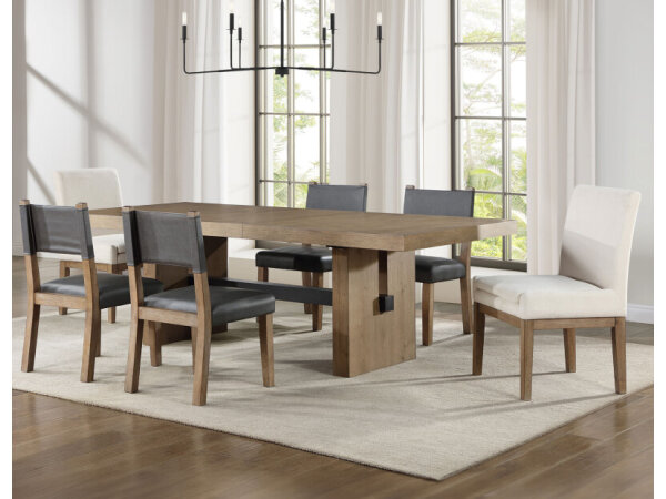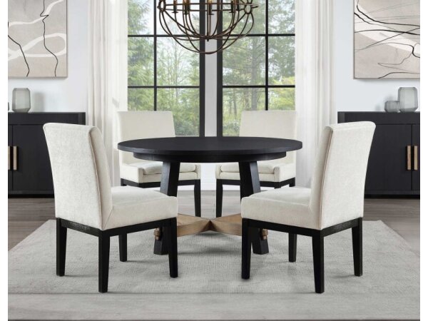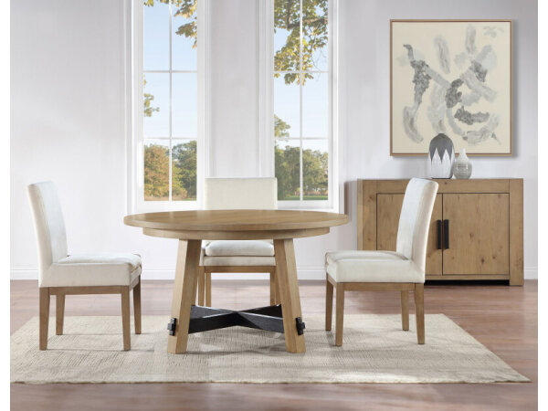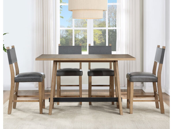 Dining Sets make a perfect fit for your dining room. The dining room is a place to gather and share with the people who mean the most to us. Stopping to enjoy breakfast as a family before beginning the day, inviting friends over for a cup of coffee, and hosting family get-togethers and holiday meals… these are all important moments facilitated by the dining room. That’s why it’s important to have enough room for everyone! We have a great selection of dining sets with round and counter-height dining tables that are perfect for the kitchen or breakfast nook as well as large farmhouse style dining sets that can expand for more guests! We have hard wood styles as well as tables and chairs with metal accents, plus you can mix and match chairs, stools and benches to fit your space! The tables come in different colors and finishes, including distressed whitewash, brown, light oak, distressed gray, dark espresso, and more! Whatever color you’re looking for, our designers will make sure you find the exact table and matching set! Some of the tables are customizable so you can specify the finish of the wood and shape of the table legs. When shopping for dining sets, it’s important to consider table height as well as the style of the legs or pedestal. For regular height tables, you’ll want side chairs and benches for seating. If you choose a counter height table you could instead choose stools. And depending on the size of the dining room you can choose a five piece dining set or more! Upholstered dining chairs are also great style options.