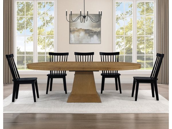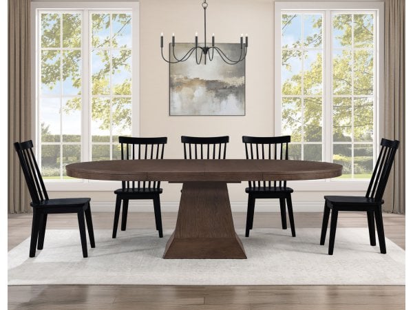 Vaughn 5-piece 60-96″ W/2-18 Leaves Dining Set, Driftwood & Black Finish