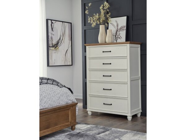Vista Bedroom – Vista 5 Drawer Chest in Hickory and Shell