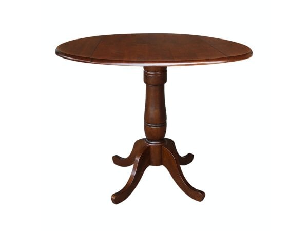 Dining Essentials – 42″ Drop Leaf Table Top w/36″H Traditional Pedestal w/Extension in Espresso