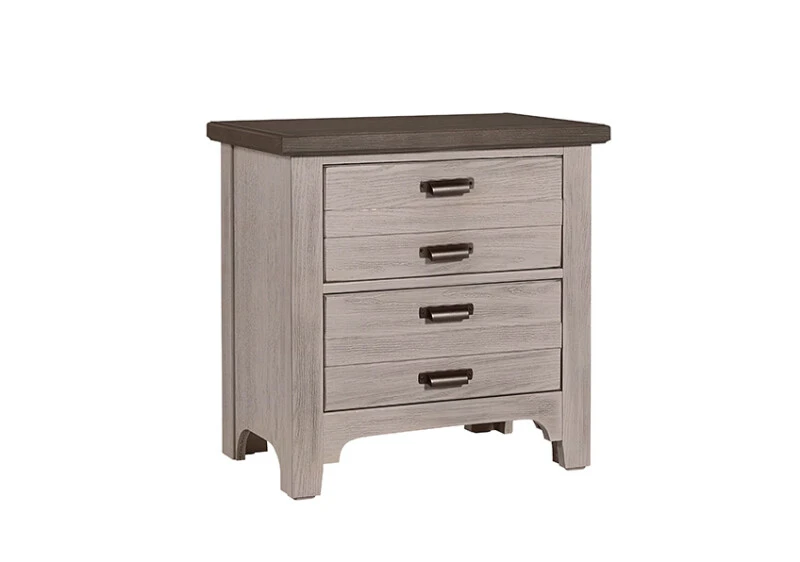 Bring Bungalow charm to your bedroom with this 2 drawer night stand with custom-designed drawer cup pulls.