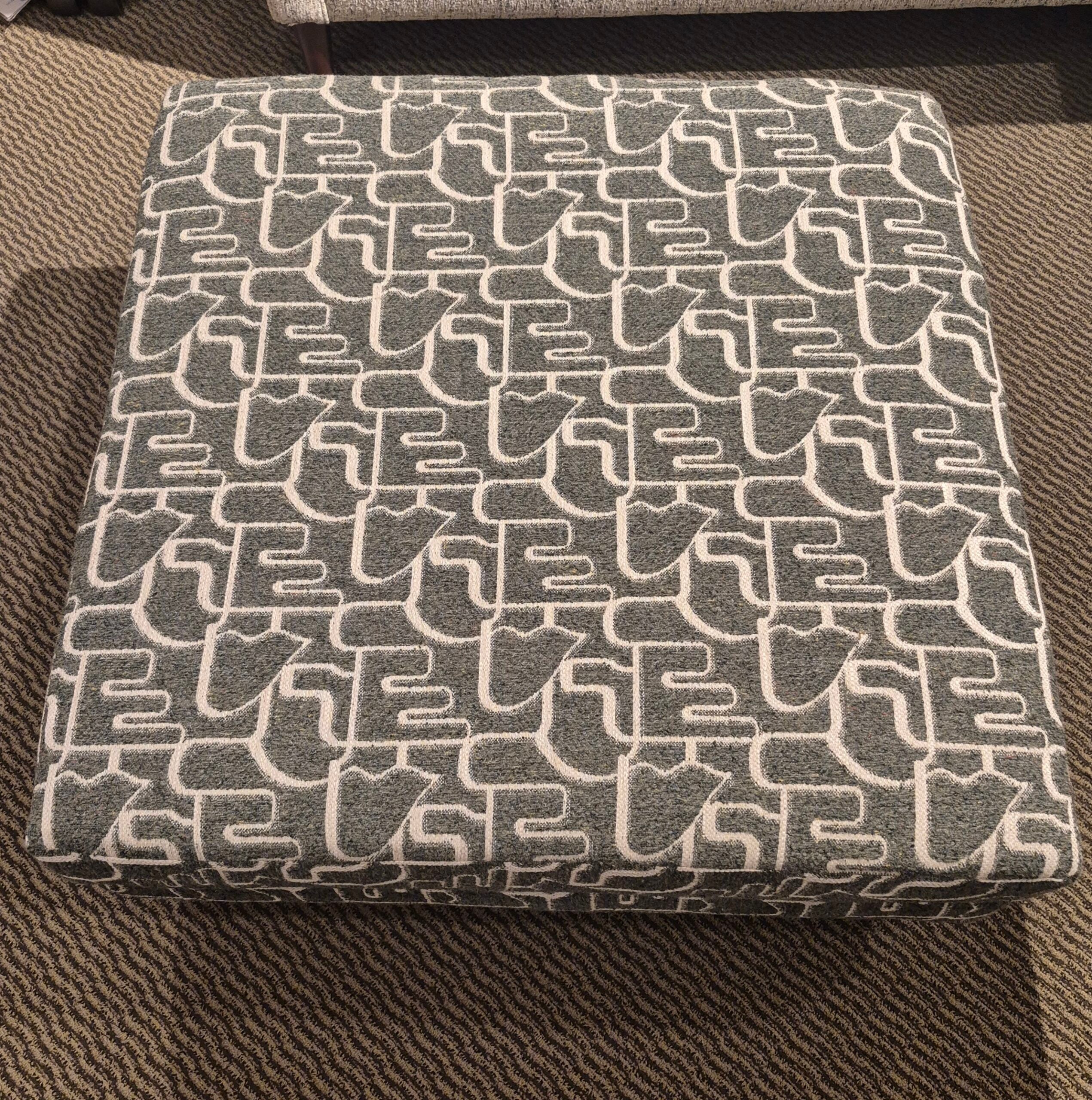 Stylish square “Gigi” cocktail ottoman with cone shaped leg.