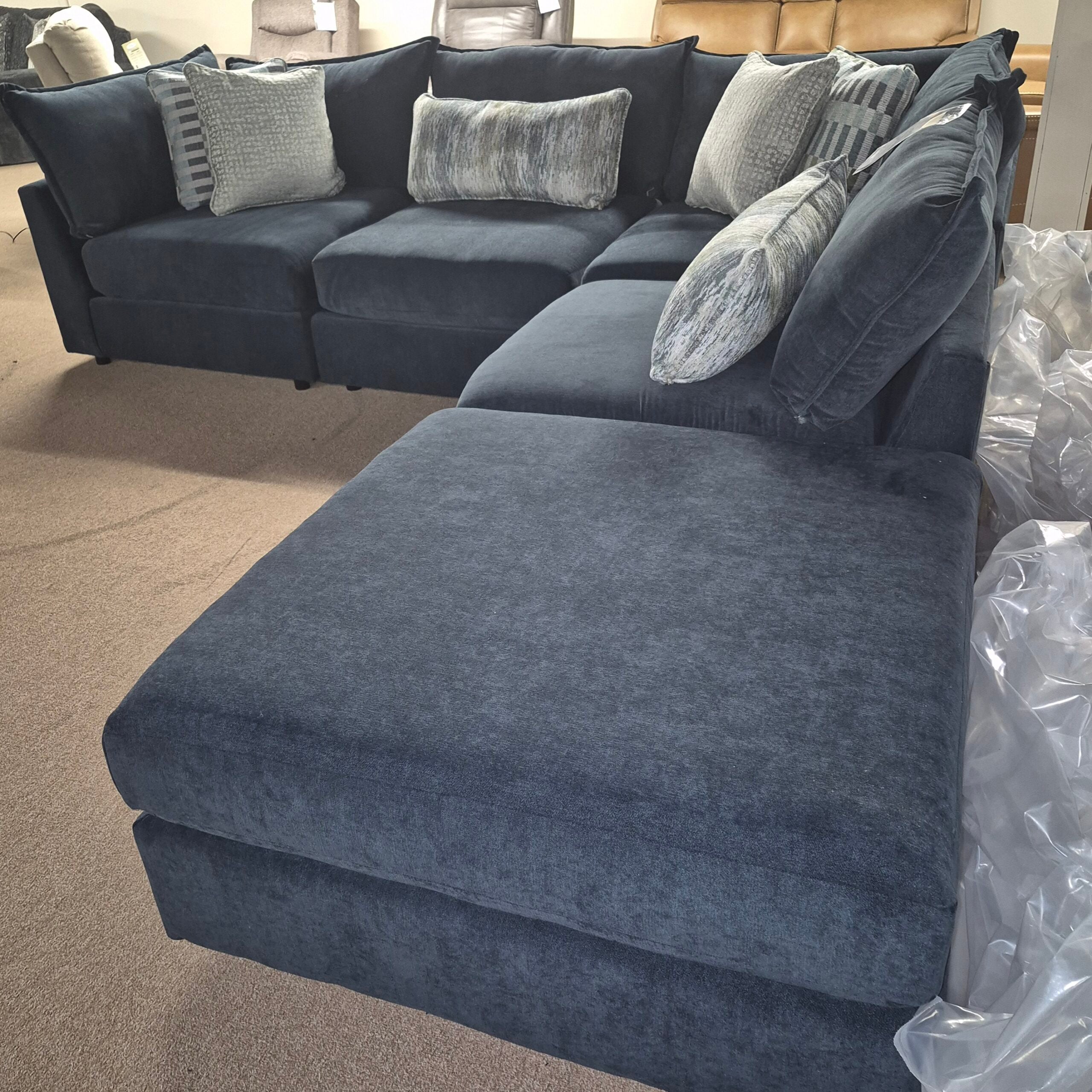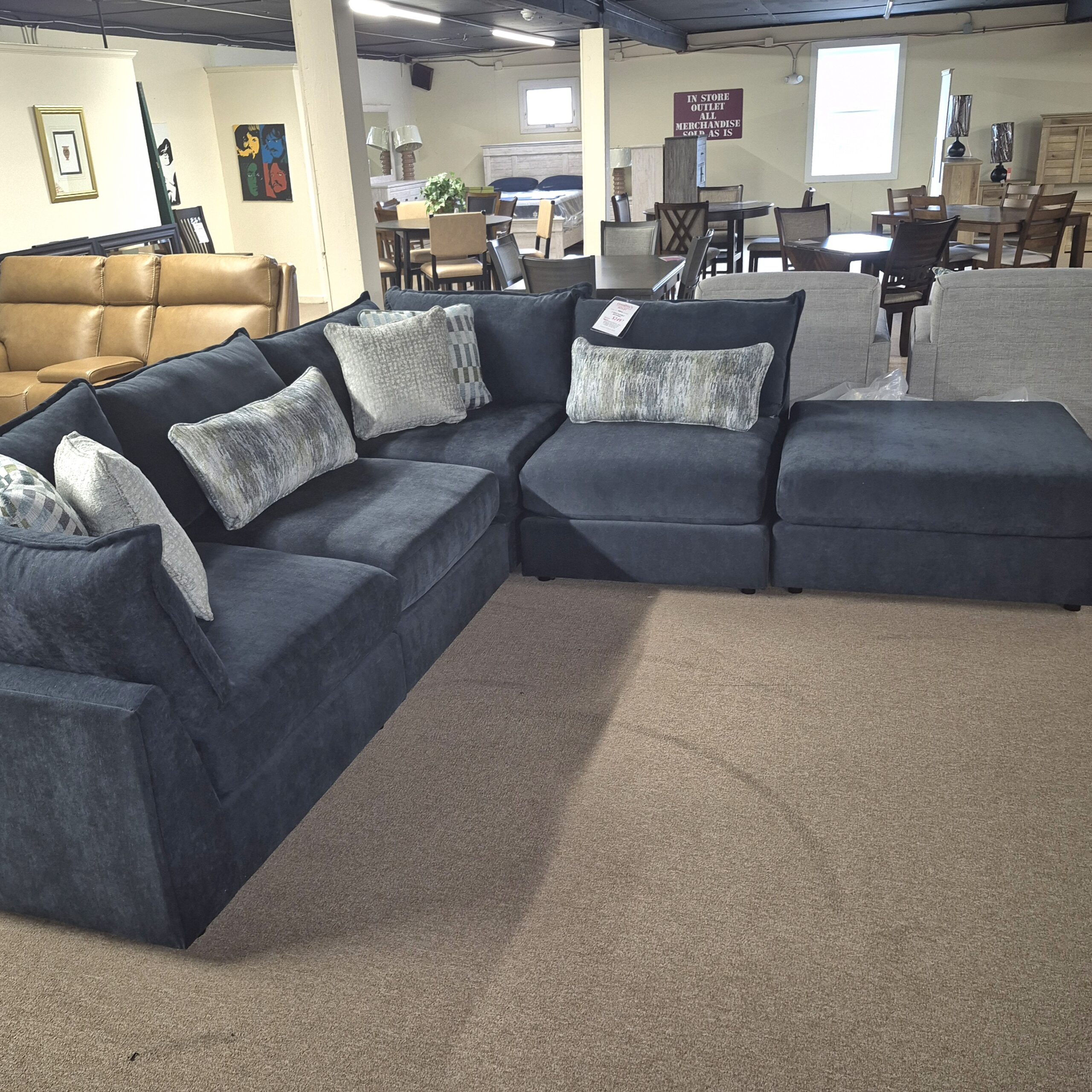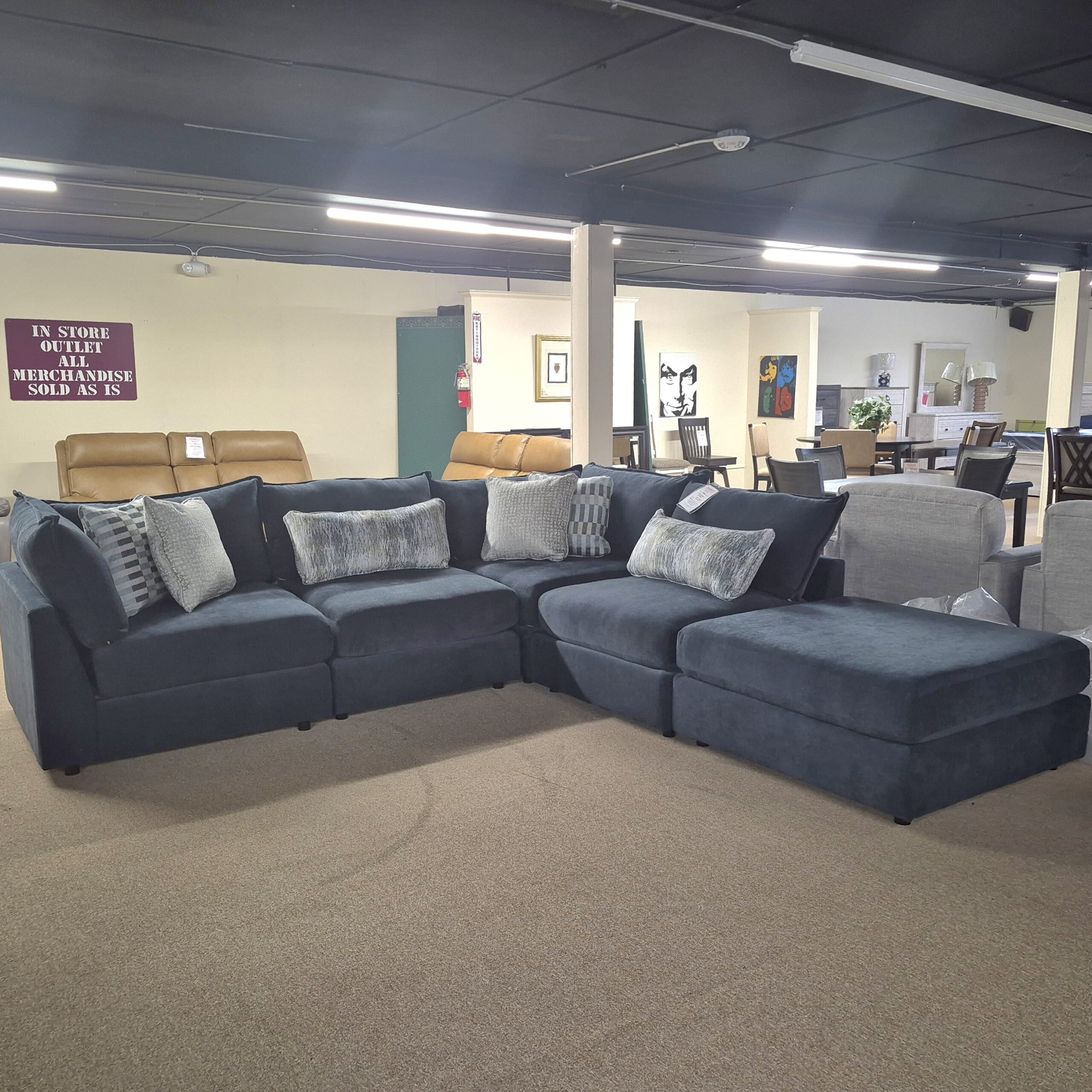 5 Piece Sectional Includes: Modular design with 2 corner pieces, 2 armless pieces & 1 bumper ottoman with plush reversible seat & back cushions, deep seating, over stuffed cushions & 6 coordinating toss pillows