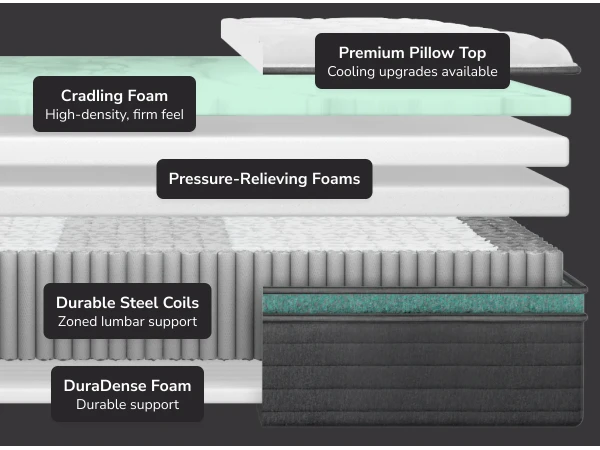 - Encased coils offer robust support by reducing motion transfer, helping you feel less movement from your partner.